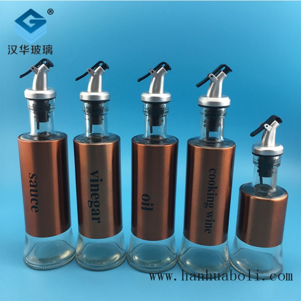 300ml電鍍玫瑰金鴨嘴玻璃油瓶
