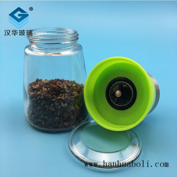綠色蓋研磨器玻璃瓶
