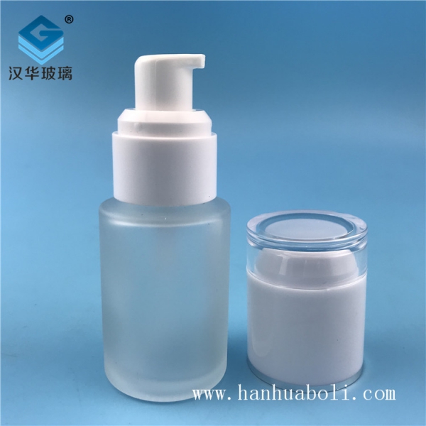 30ml白色蓋磨砂玻璃乳液瓶